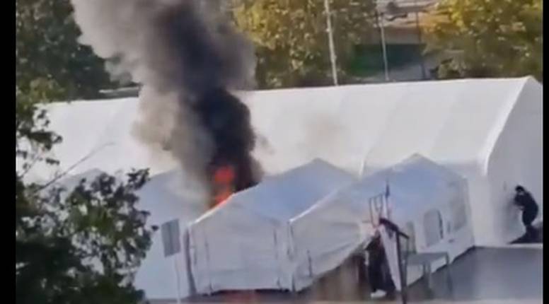 Kako javlja Nova.rs, požar je izbio nakon pucnjave. Objavili su i snimku na kojoj se čuju pucnjevi, policajci trče prema šatoru...
