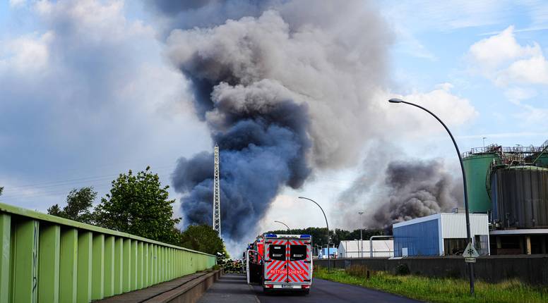 Nad tim dijelom Hamburga nadvio se crni oblak uz odjekivanje manjih eksplozija. Policija je vodenim topovima gasila požar.