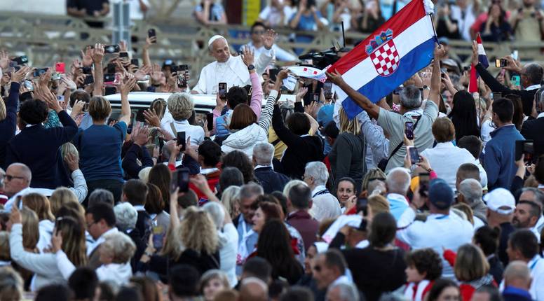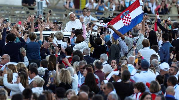 Papa se prije mise provozao u papamobilu, mašući hodočasnicima iz Hrvatske i drugih zemalja koji su se okupili u središtu Katoličke Crkve. Vjernici su ga pozdravili burnim pljeskom i pjesmom, stvarajući ozračje zajedništva i radosti.