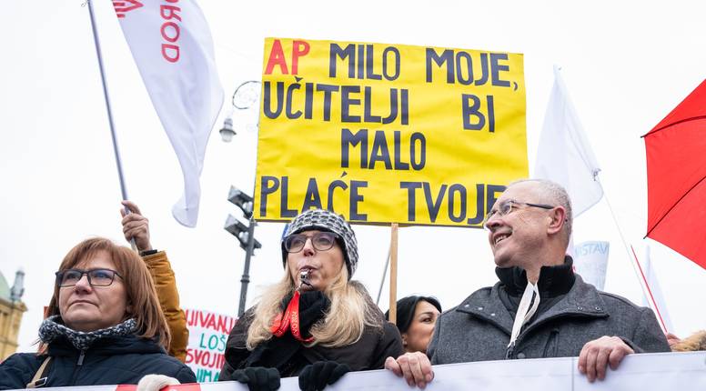 - Ovo je hajka na javne službe, kako se može objaviti da plaće zaposlenih rastu 88 posto? Ovdje smo i povodom objave da se sucima diže osnovica za 200 eura. To prosvjetni sindikati u najboljim godinama nisu uspjeli izboriti. Mi očekujemo da se pozicija nastavnika i znanstvenika stavi u istu poziciju s drugim zaposlenicima. Plaće su rasle na šlampav i neuredan način i mi moramo reagirati. Ne vidimo drugi način da ministri realiziraju ono što je premijer najavio - da se uredba otvori i da se koeficijenti povećaju - kazao je Matija Kroflin, Nezavisnog sindikata znanosti i visokog obrazovanja.