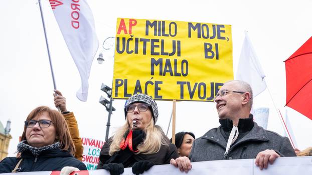- Bilo bi mi draže da sam vam mogao čestitati Valentinovo s Erosom Ramazzotijem, no možda je došlo vrijeme za neki novi jezik. Pisali smo premijeru, dugo čekamo odgovor, ovdje smo kao predstavnici tisuća nezadovoljnih članova kojima je dosta da obrazovanje bude na margini, a gledamo kako se hitno donosi zakon o povećanju plaća sucima - upozorio je Zrinko Turalija, šef Nezavisnog sindikata zaposlenih u srednjim školama Hrvatske.