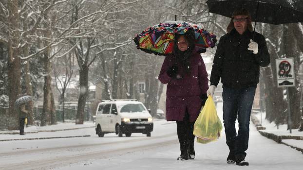 Snijeg od jutarnjih sati u petak pada u cijeloj Dalmatinskoj zagori, a mjestimično i ledena kiša koja je opasnija za vozače jer na cestama stvar poledicu te se preporučuje opreznija vožnja kako bi se izbjegla proklizavanja i zastoji u prometu, izvijestili su iz Županijskih cesta u Splitu.