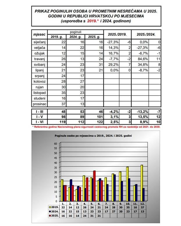 Inače, koliko je porazna ovogodišnja statistika pokazuju podaci MUP-a. Samo je ove godine na hrvatskim cestama poginulo 122 ljudi, što je 10 više u odnosnu na isti period 2024. Najviše poginulih zabilježeno je u svibnju, njih čak 31.