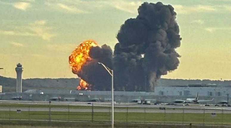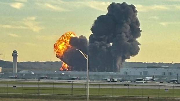 Snimke s mjesta nesreće prikazuju ogroman plamen i crni dim u blizini aerodroma