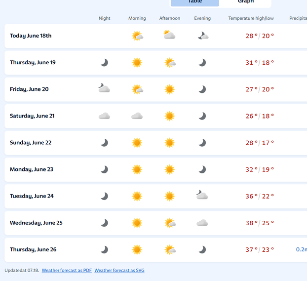 U Zagrebu bi tako moglo pržiti na 35 °C, Split na 33 °C, a istok Hrvatske i do 36 °C. Ako je vjerovati stranici yr.no, u Zagrebu bi u srijedu mogla temperatura porasti i na 38.