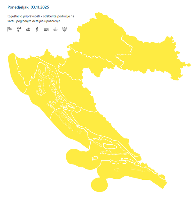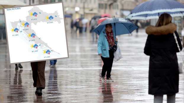 U prvom dijelu dana promjenljivo i pretežno oblačno s kišom, mjestimice i izraženijim pljuskovima s grmljavinom. U Gorskom kotaru lokalno je moguća i obilnija oborina. Od sredine dana sa zapada razvedravanje, zatim djelomice, ponegdje i pretežno sunčano, a kiše će još biti na krajnjem jugu, navode stručnjaci iz DHMZ-a.