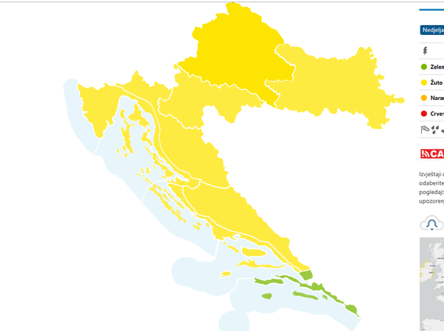 Zbog mogućeg olujnog nevremena, DHMZ je upalio žuti alarm za cijelu Hrvatsku! Žuti alarm označava potencijalno opasno vrijeme.