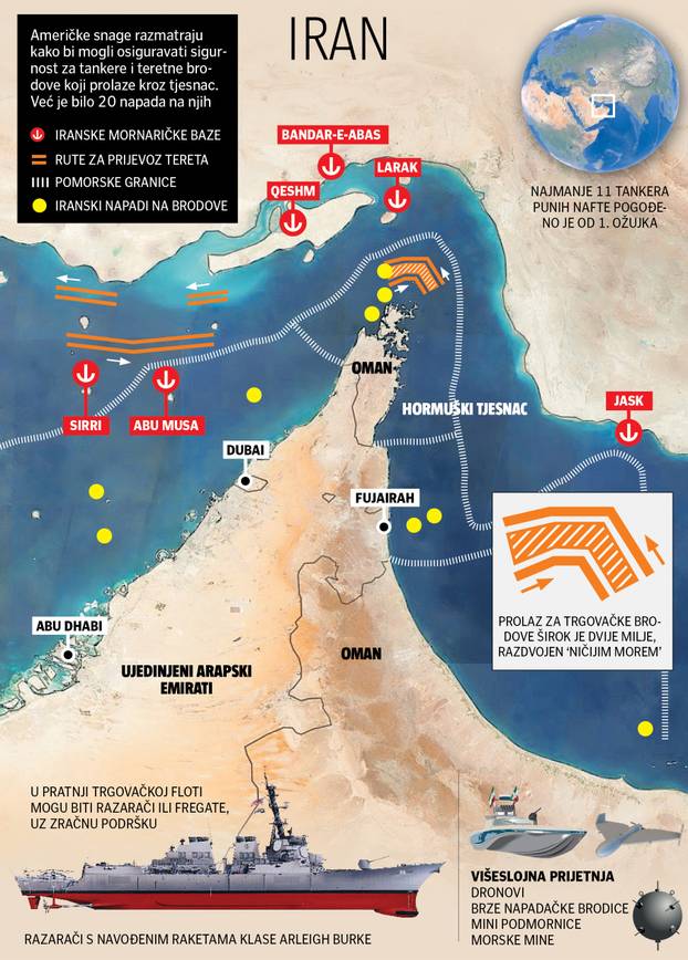 - Može američki predsjednik obećati da će čuvati brodove mornaricom, ali to ne znači ništa. Razminiranje dugo traje, a i pitanje je kad će tankeri ondje moći normalno zaploviti. Jednom su to već napravili u povijesti pa se zna kakvi ih problemi očekuju - kaže Bacalja.