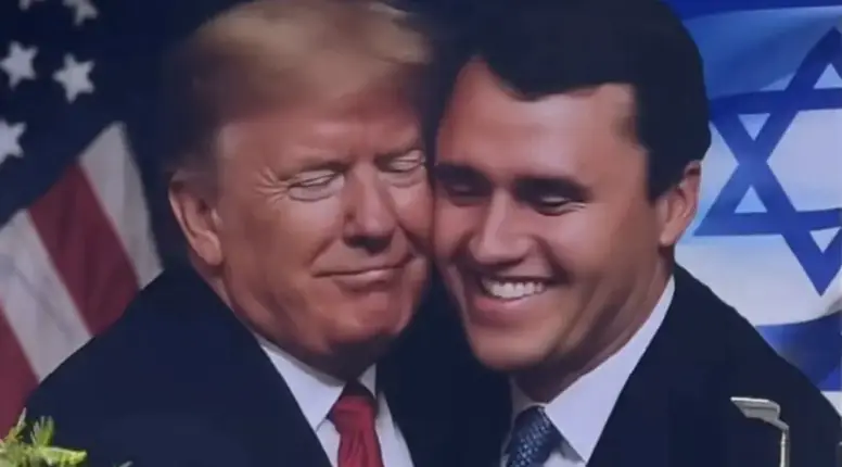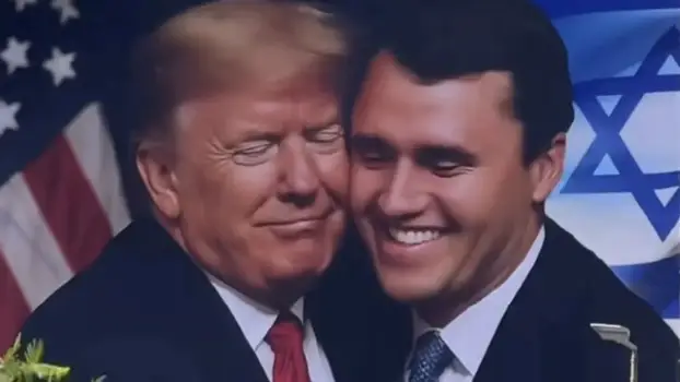 Na plakatu je fotografija na kojoj su Trump i Kirk zagrljeni. S jedne strane se nalazi američka zastava, a s druge izraelska. Ispod slike piše: "Veliki Charlie Kirk. R.I.P - Shlomo perl."