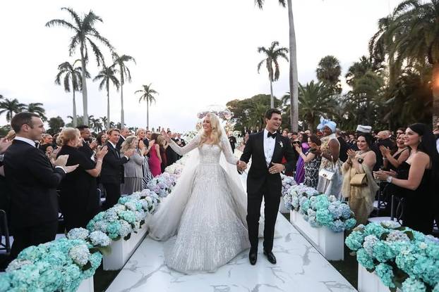 Mladenka je elegantnu haljinu libanongskog dizajnera punu šljokica upotpunila malim decentnim bijelim buketom, a kosu je raspustila. Njen dugi veo savršeno je naglasio da se udaje američka ‘princeza‘ koju je Michael Boulos u siječnju 2021. zaprosio u vrtu Bijele kuće dijamantnim prstenom od 13 karata.