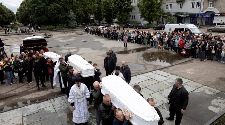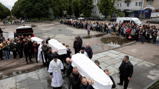 Pokopani su jedno pokraj drugoga u bijelim lijesovima. Najmlađe su žrtve još jednog ruskog raketnog napada koji je uništio njihov dom, i potresao cijelu zajednicu