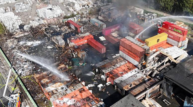 Izravnu opasnost od požara dodatno su povećale plinske boce pod tlakom pohranjene u skladištu koje su eksplodirale nakon nekoliko sati, a neke od njih odbačene su nekoliko stotina metara u zrak i uzrokovale još požara u okolnom području.