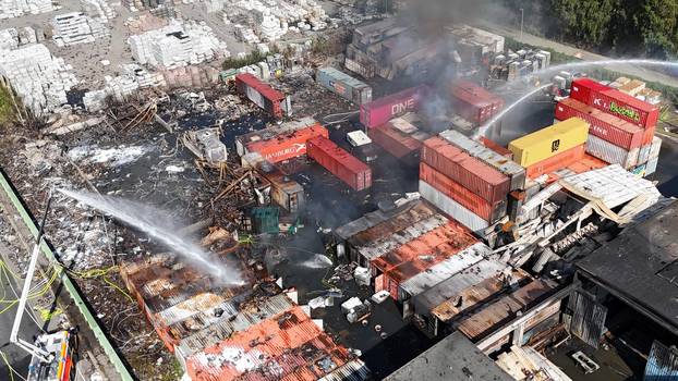 "Došlo je do daljnjih eksplozija uzrokovanih spremnicima plina pod tlakom", rekao je glasnogovornik, a područje za sada ostaje ograđeno.
