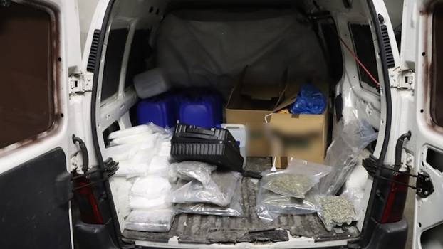 U subotu, temeljem naloga suca istrage Županijskog suda u Zagrebu, pretražena je podzemna garaža i u njoj parkirani Citroen Berlingo, kojom prilikom su pronađena 26 paketa s 28.118 grama amfetamina, jedan paket s 1174 grama kokaina i osam paketa s 5618 grama marihuane.