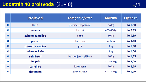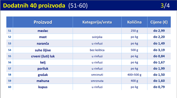 Istaknuti popis proizvoda u poslovnici kao i posebna polica gdje će takvi predmeti stajati pomoći će kupcima da se lakše snađu. U nastavku pogledajte maksimalne cijene svih proizvoda koji su na popisu.