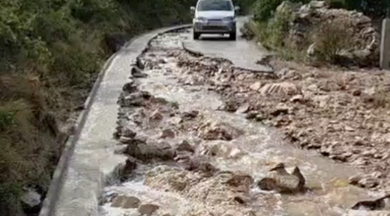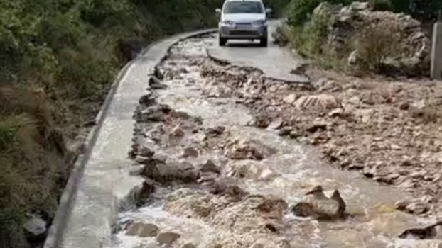 TRIBUNJ - Veliko nevrijeme u srijedu ujutro stvorilo je snažnu bujicu koja je odnijela cestu u Tribunju. Neki automobili ostali su zaglavljeni na ostacima asfalta. Načelnik Tribunja upozorio je ljude na nove nepogode te da pregledaju svoju imovinu