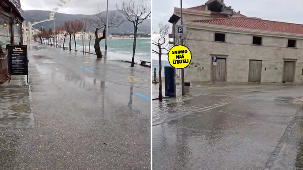 Snažno nevrijeme praćeno jakim vjetrom i obilnim oborinama pogodilo je danas obalu, a najkritičnije je na području Dalmacije gdje kombinacija niskog tlaka i olujnog juga uzrokuje izraženu ciklonalnu plimu. Naš čitatelj iz Kaštela javlja nam kako je nekim mještanima more čak ušlo u kuću, te kako se more izlilo na lokalnu rivu i pretvorilo šetnice u plićake.