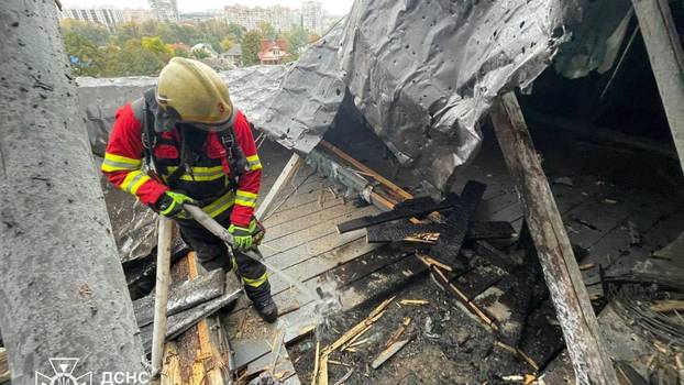 Dron je udario u krov zgrade, uslijed čega je izbio požar. Vatrogasci Državne službe za izvanredne situacije Ukrajine brzo su ga ugasili.