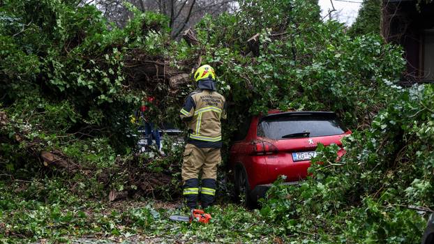 Snijeg je zabijelio okolicu Zagreba i stvorio probleme na prometnicama u petak u jutarnjim satima. Nevrijeme stvara probleme i u Zagrebu - na Sljemenu su se srušila dva stabla na cestu. Prema dojavi građana, sami su uspjeli maknuti jedno manje stablo, a drugo veće, dužine 12 metara, uklonili su vatrogasci JVP Grada Zagreba, potvrdio nam je zapovjednik Siniša Jembrih.