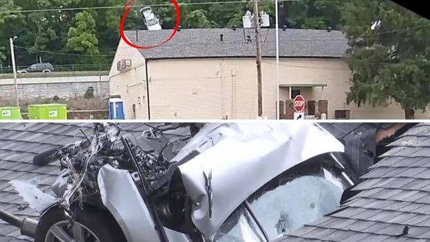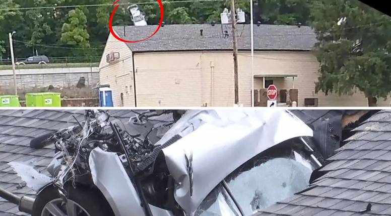 Snimka nadzorne kamere obližnje osnovne škole zabilježila je trenutak kada automobil leti prema krovu. Udar je bio toliko snažan da je motor automobila izletio i sletio iza zgrade, blizu jarbola sa zastavom.
