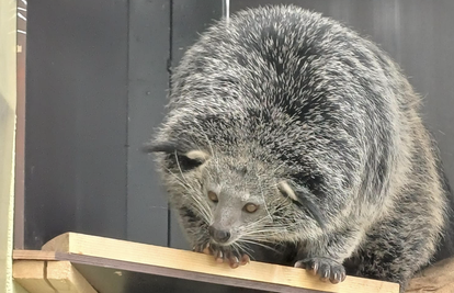 OSIJEK - U Zoološki vrt Osijek stigao je binturong. Životinja izgleda kao kombinacija medvjeda i mačke, a inače je iz porodice cibetki. ima krzno koje prirodno miriši na kokice te rep koji im služi kao organ za prihvaćanje, što je korisno pri penjanju. Mogu težiti između 9 i 20 kilograma.