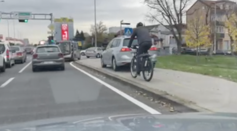 Ovaj 'genijalni' vozač odlučio je voziti po nogostupu, kako bi si olakšao, a tim je potezom ugrozio pješake i bicikliste.