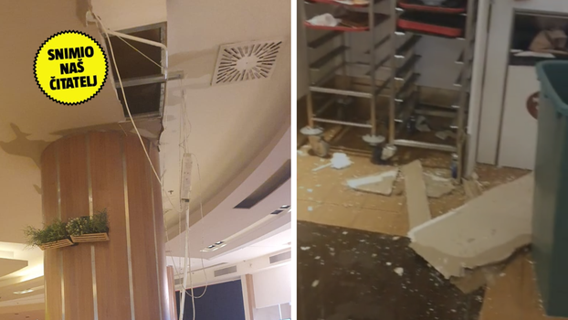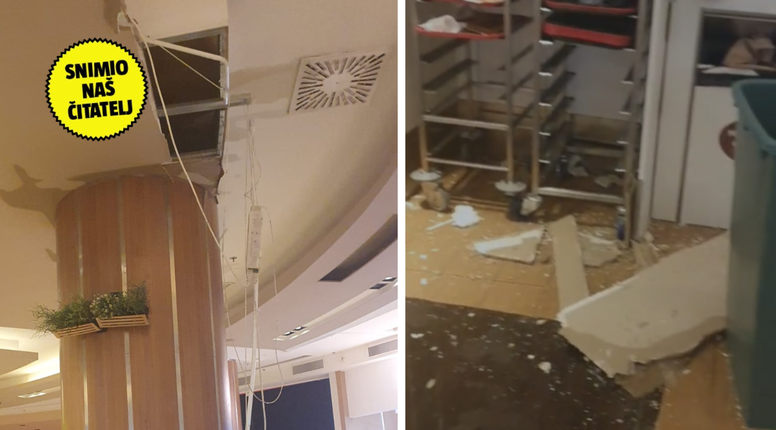 Čitateljica nam je kazala kako je komad stropa uništio stol te kolica za pladnjeve koji su se nalazili pored stola