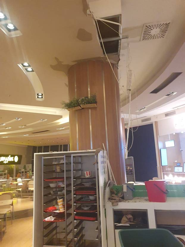 Ljudi su sjedili za stolom i strop se odjednom urušio. Svi su odmah pobjegli, ispričala nam je čitateljica koja je snimila urušeni strop Arena Centra nakon jake kiše u Zagrebu u srijedu navečer.