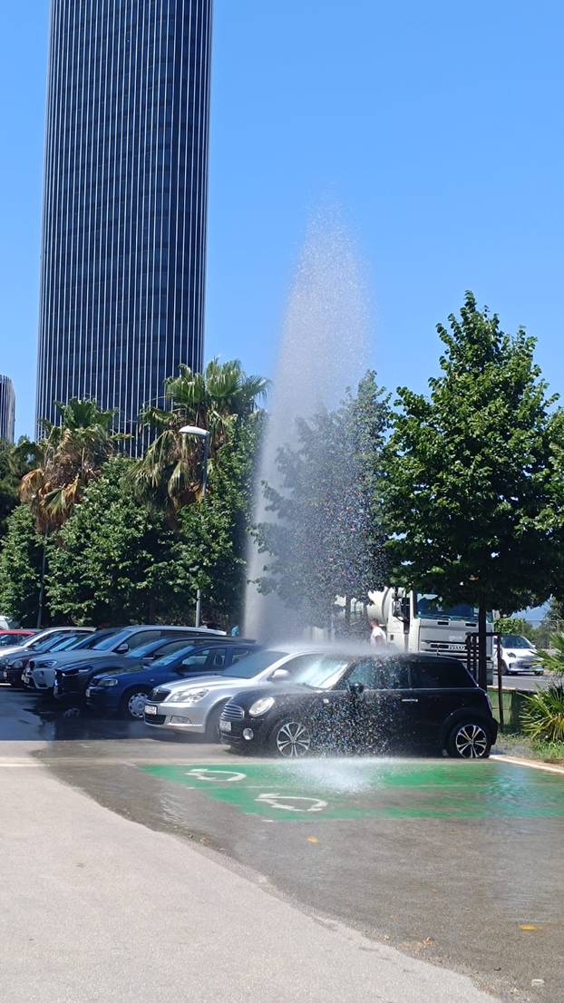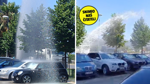 Voda je šikljala visoko u zrak. Poplavio je parking za električne aute. Danas je baš jako vruće pa je ova voda barem oprala aute i osvježila parking. Bolje da se na ovo nasmijemo nego da plačemo, kazala je čitateljica koja je snimila puknuće hidranta u Splitu.