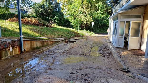 U podrumu bolničke zgrade, čije su prostorije povezane i ukupne površine 20 puta 20 metara, voda je jutros dosegnula visinu od 10 centimetara. Postavljena je pumpa za ispumpavanje, a vodeni val je do 7,40 sati sveden na pet centimetara i nastavio se povlačiti. Voda koja se slijevala iz šume preusmjerena je na prometnicu, a dotok se postupno smanjivao.