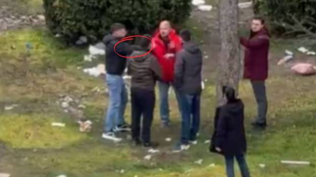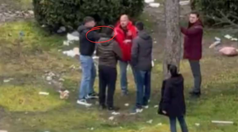 U jednom trenu netko Latasa prima za ruku, a ovaj uzvraća suzavcem. Na snimkama se vidi da su 'ćaciji' prvi nasrnuli, a ne da ih je muškarac napao.