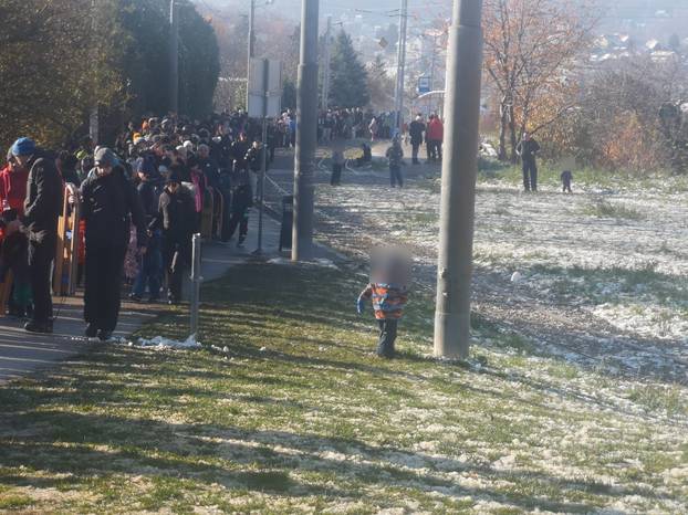 Zagrepčani su u subotu pojurili na Sljeme nakon što je pao snijeg. Isti scenarij dogodio se i u nedjelju. Nastala je gužva na sljemenskoj žičari, stvorila se dugačka kolona. Mnogi su u rukama držali sanjke i s nestrpljenjem čekali 'osvojiti vrh'.