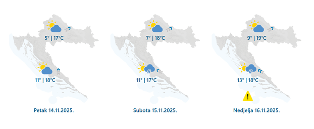 Meteorolog Mikec dodaje da će magla na kopnu biti prisutna i u petak, ali u manjoj mjeri. Tijekom dana slijedi zatopljenje, pa će i vikend donijeti ugodne temperature između 15 i 20 °C. Ipak, oblaka će biti sve više, a kiša se najprije očekuje u Gorskom kotaru, zatim i u drugim dijelovima zemlje do kraja nedjelje.