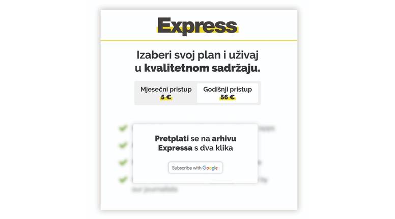 Registrirajte se putem Subscribe with Google i u samo dva koraka ostvarite 30 dana besplatnog pristupa arhivi Expressa.
