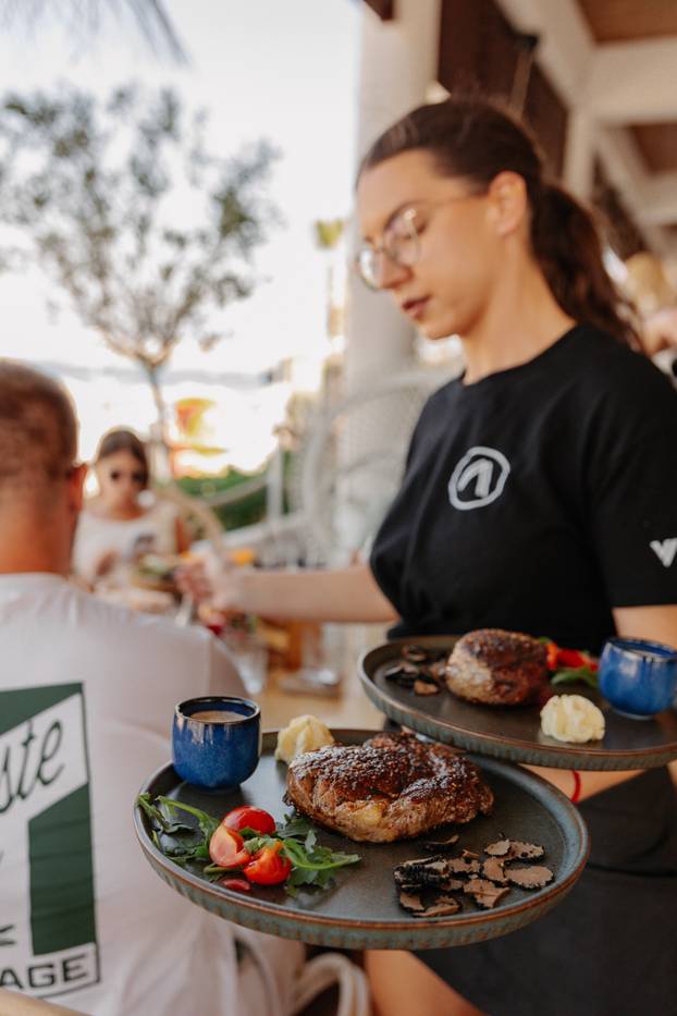 Na plaži ćete lako pronaći dobru hranu po pristupačnim cijenama – primjerice pizze od 9 eura ili pivo od 3 eura. Posebno se izdvaja Nomad Cuisine, beach restoran koji podiže iskustvo hrane na novu razinu, nudeći vrhunski brunch, napolitanske pizze, steakove i salate, u interijeru koji je sam po sebi doživljaj.