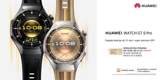 Huawei lansirao novu GT 6 seriju pametnih satova s baterijom do 21 dan! Osvojite slobodu uz naprednu GPS tehnologiju i stil. Ugrabite vaučer od 30 eura pri kupnji