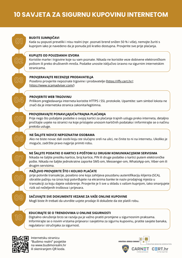 Detaljniji savjeti za sigurnu online kupovinu, ali i informacije o najčešćim vrstama online prijevara mogu se pronaći na mikrostranici kampanje www.budimorealni.hr.