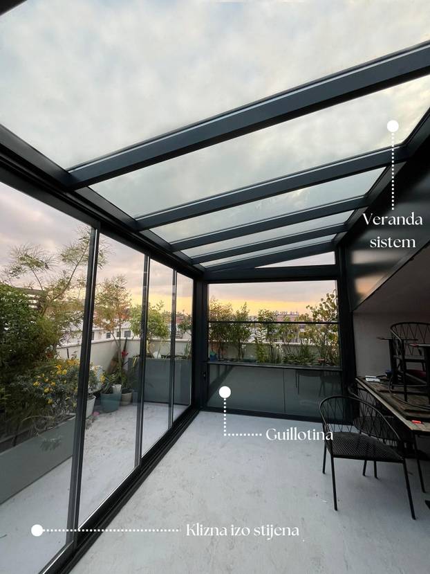 Zahvaljujući sofisticiranim sustavima otvaranja i zatvaranja, korisnici zadržavaju potpunu kontrolu nad prostorom. U ljetnim mjesecima prostor se u trenu pretvara u otvorenu terasu, dok zimi pruža toplinu i zaštitu.