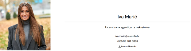 Ako tražite nekretninu ili želite povjeriti prodaju svog doma u sigurne ruke, Eurovilla i Iva Marić su pravi izbor. Iva će vas osvojiti svojom posvećenošću i profesionalnim pristupom, a tim Euroville će osigurati da svaki aspekt procesa bude besprijekoran.