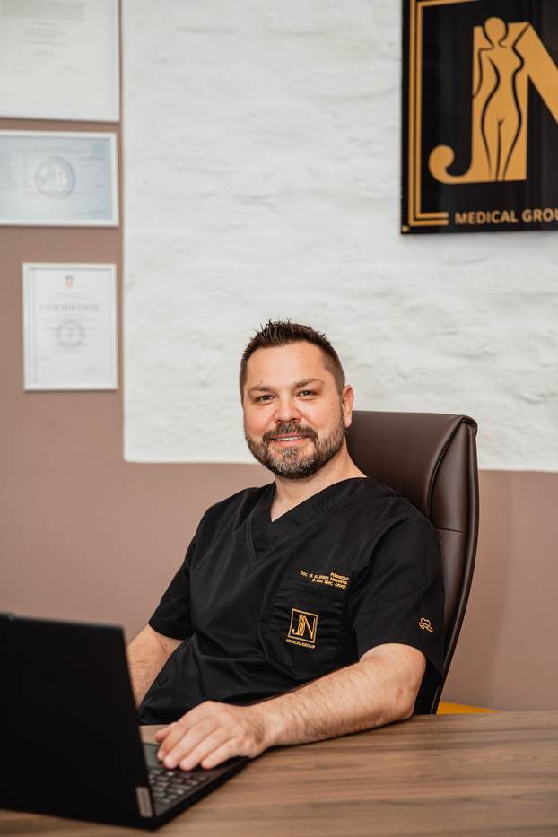 Iza njega stoji impresivno obrazovanje: od Medicinskog fakulteta u Rijeci, specijalizacije iz opće kirurgije u Zagrebu, pa do subspecijalizacije iz plastične, rekonstruktivne i estetske kirurgije. Radio je u najrenomiranijim bolnicama u Hrvatskoj i inozemstvu, a njegovo znanje kontinuirano raste kroz rad sa studentima i vlastito znanstveno djelovanje. Sve to čini osnovu njegovog rada u JN Medical Group, gdje svakodnevno primjenjuje naučeno u praksi.