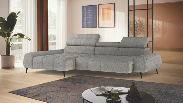 Ova kutna garnitura dolazi u elegantno sivoj boji, s električnom mogućnošću razvlačenja te dodatno podesivim glavonaslonom za večernji užitak u filmu s kokicama i boljom polovicom.