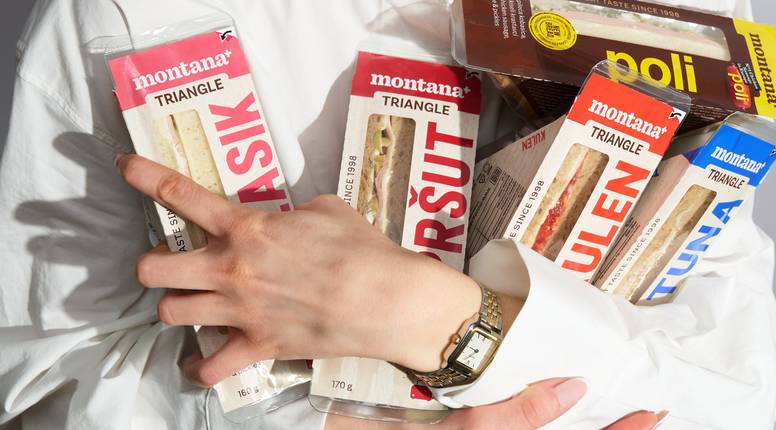 Legendarni hrvatski sendviči, Montana+ trokuti dobili su novi dizajn. Osvježen izgled ambalaže sada jasno komunicira vrstu punjenja kako bi potrošači brzo i lako na policama trgovina i benzinskih pumpi uočili svoj omiljeni sendvič. Svijetli, čisti papir idealna je podloga za velika tiskana slova, koloritom usklađena s nadjevima. Jednostavno imenovani – Klasik, Pršut, Kulen i Tuna, sendviči precizno komuniciraju delikatesna punjenja i okuse.