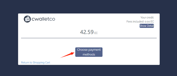 Odaberite CWALLETCO kao platformu plaćanja i nastavite na sljedeći korak.