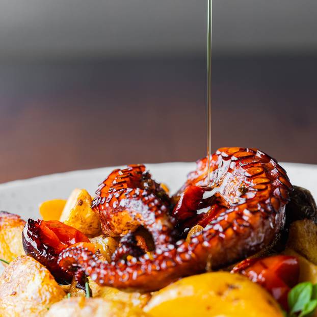 Jelovnik se ne mijenja iz dana u dan. I to je dobro, jer zna se što možete očekivati. Mlada krčka janjetina i porchetta s ražnja ono su zbog čega se gosti često vraćaju i uvijek postoji i mali dodatak, ovisno o sezoni. U proljeće šparoge i medvjeđi luk, u ljeto smokve i šljive, u jesen gljive i bundeve. Sitnice koje čine razliku, baš onoliko koliko treba.