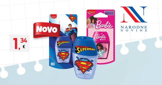 Novo u ponudi Narodnih novina je kolekcija školskog pribora s motivom Supermana. Hit-film, koji se ovoga ljeta prikazuje i u našim kinima, bio je inspiracija najvećem svjetskom proizvođaču školskog pribora, francuskom Mapedu, za kreaciju školskog pribora Superman. Ne sumnjamo da će Superman pernica, bojice, olovke, gumice i ostalo oduševiti male ljubitelje ovog junaka. Školarke će pak biti sretne s atraktivnom Barbie kolekcijom školskog pribora, koja ove sezone donosi i nekoliko noviteta.