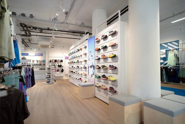 Koncept trgovine koji je osmislila SWOODA temelji se na čistom i mirnom ambijentu u kojem reciklirani materijali djeluju kao akcenti koji pričaju priču o održivosti. Novi su elementi dizajnirani, a postojeći optimizirani s naglaskom na reciklirane, reciklabilne i obnovljive materijale za namještaj i izloge. Posebno je osmišljen i kutak za održivost, gdje kupci mogu saznati više o ekološkim praksama i sudjelovati u smanjenju otpada doniranjem svojih starih tenisica, koje će recikliranjem postati materijal za elemente u novim trgovinama.