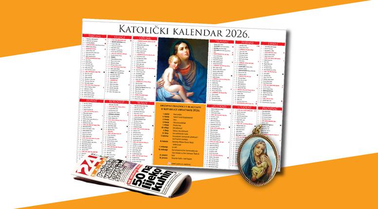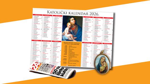 Svim čitateljima darujemo veliki katolički kalendar za 2026. godinu sa slikom Marije s Isusom u naručju te popisom svetkovina, svetaca, blagdana i državnih praznika u Hrvatskoj. Riječ je o kalendaru koji će vam poslužiti u cijeloj 2026. godini te koji će na najbolji i najpraktičniji način ukrasiti zid ili neko drugo mjesto prema želji u vašem domu. U njemu su popisani svi sveci i blaženici te označeni državni praznici i blagdani u Hrvatskoj.