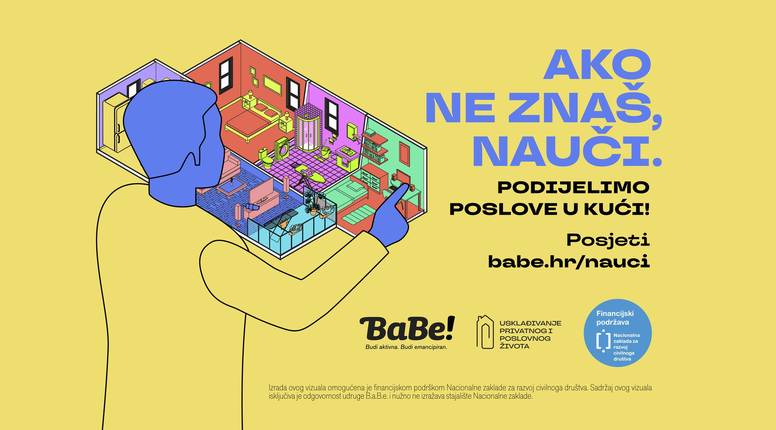 Nakon što su muškarci u istraživanju udruge B.a.B.e. naveli da ne sudjeluju u kućanskim poslovima jer „ne znaju kako“, razvijeno je virtualno kućanstvo koje ih kroz jednostavne korake uči – bez izgovora.