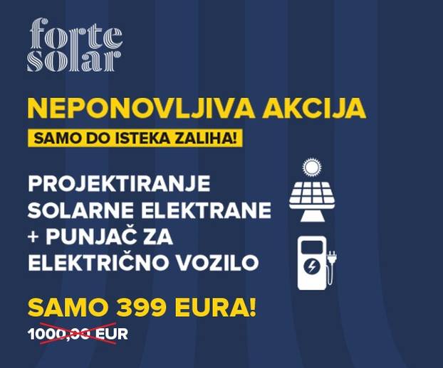 Na hrvatskom tržištu trenutno postoji jedna ponuda koja izaziva pažnju - i to s razlogom. Tvrtka Forte Solar omogućuje projektiranje solarne elektrane uz potpuno funkcionalan punjač za električno vozilo, i to sve zajedno za nevjerojatnih 399 eura. Riječ je o kompletnom projektu prilagođenom vašem domu, koji uključuje analizu potrošnje, procjenu krova, tehničke izračune i savjetovanje, uz EV punjač koji ste odmah spremni ugraditi.