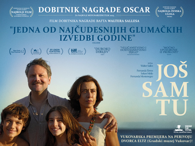 Pored europske kino senzacije u programu ovogodišnjeg Vukovarskog festivala svoje je mjesto pronašao i brazilski hit JOŠ SAM TU koji je ove godine osvojio prestižnu nagradu Oscar u kategoriji najboljeg međunarodnog filma te koji je u svojoj domicilnoj zemlji, logično, postao pravim blockbusterom. Najnoviji triler redatelja Waltera Sallesa široj publici najpoznatijeg po režiji remek-djela „Glavni kolodovor“ nakon više od 15 godina vraća se režiji dugometražnog igranog filma o ženi udanoj za bivšeg političara u vrijeme brazilske vojne diktature. Na popularnoj internetskoj stranici IMDb film ima ocjenu 8,2/10, a na stranici Rotten Tomatoes koja se bavi prikupljanjem tekstova filmskih kritičara diljem svijeta JOŠ SAM TU do danas ima 97% posto pozitivnih ocjena kritike što su, uz brojne osvojene nagrade i priznanja, uključujući i spomenutog Oscara, dovoljni razlozi zašto se upravo ovaj film smatra jednim od najatraktivnijih naslova ovogodišnje festivalske ponude u Vukovaru.